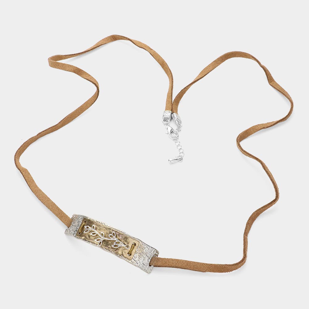 Leaf Twig Metal Bar Pointed Faux Suede Wrap Bracelet