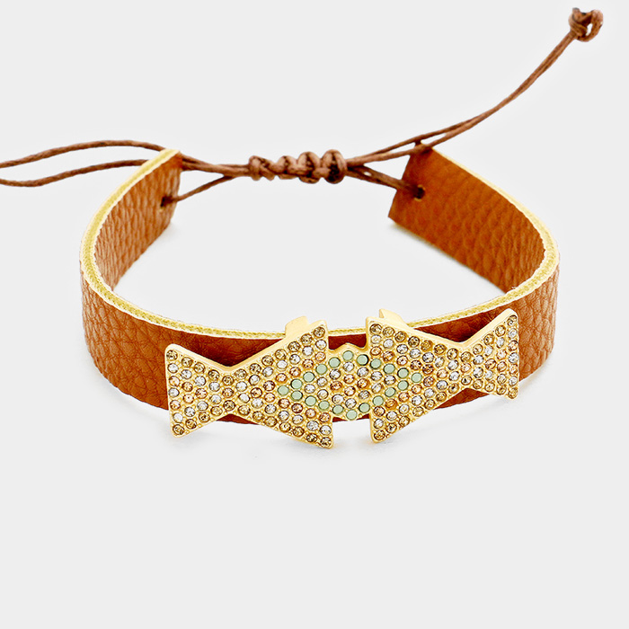 Leather Pave Crystal Rhinestone Adjustable Cinch Pull Tie Bracelet