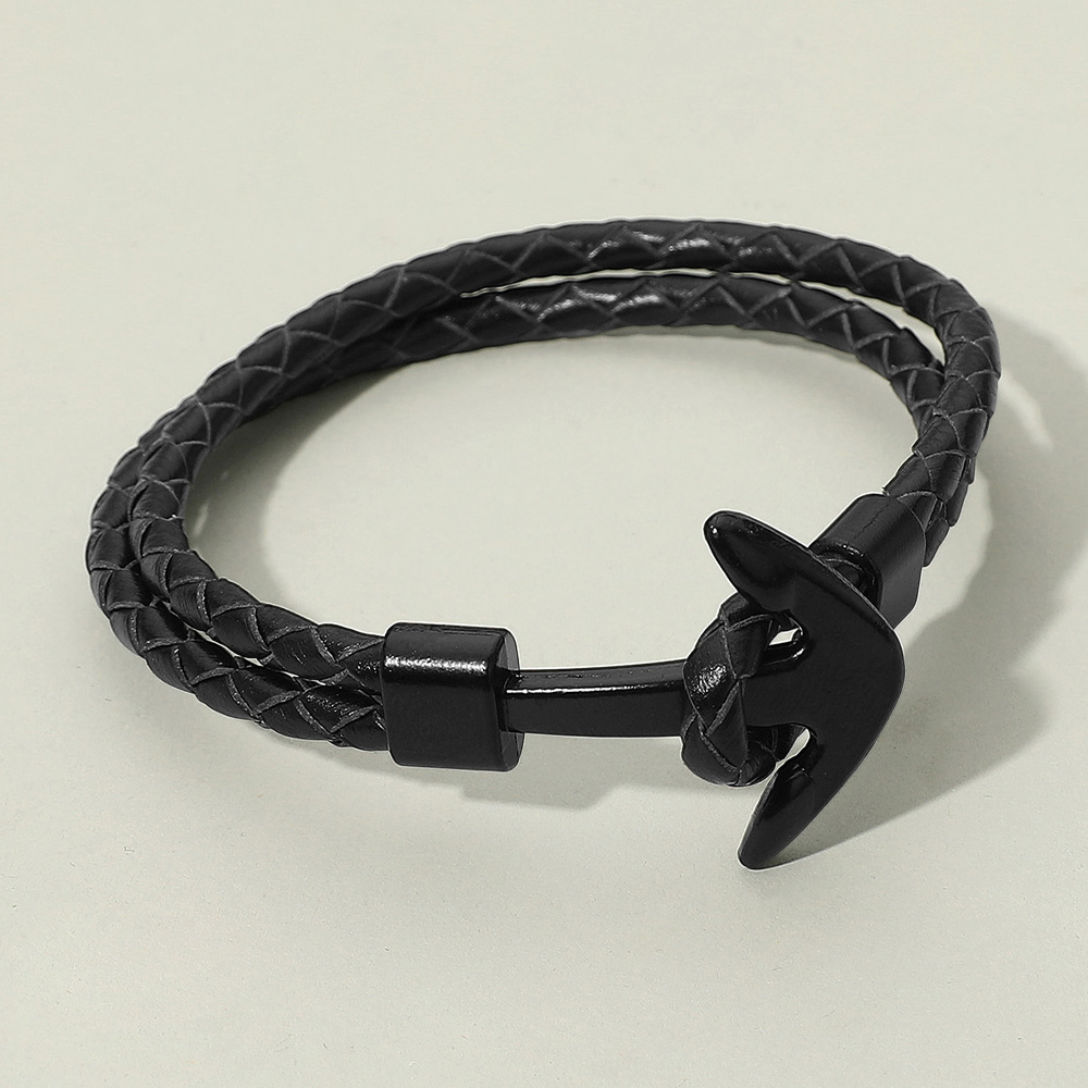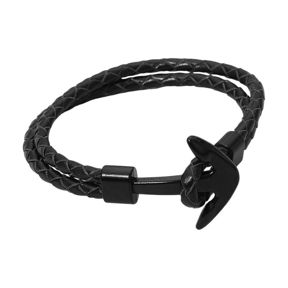 Mens Genuine Leather Braided Anchor Clasp Bracelet