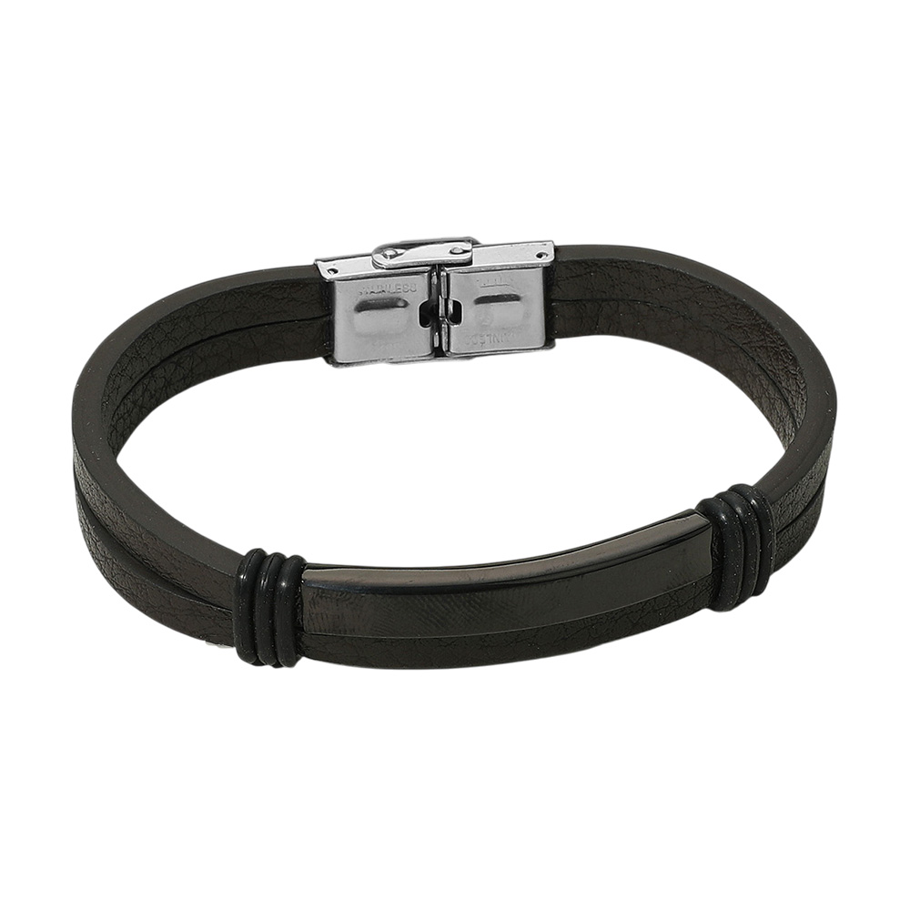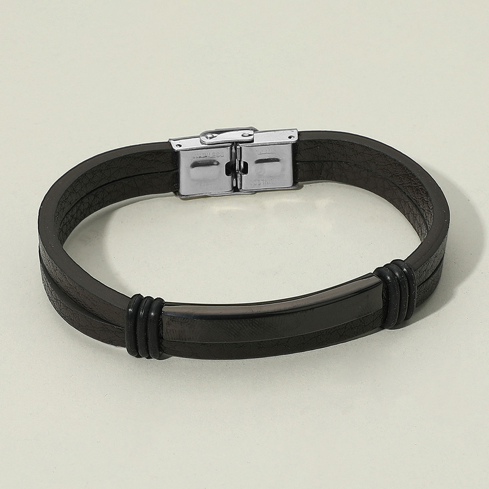 Mens Metal Plate Accent Sleek Genuine Leather Bracelet