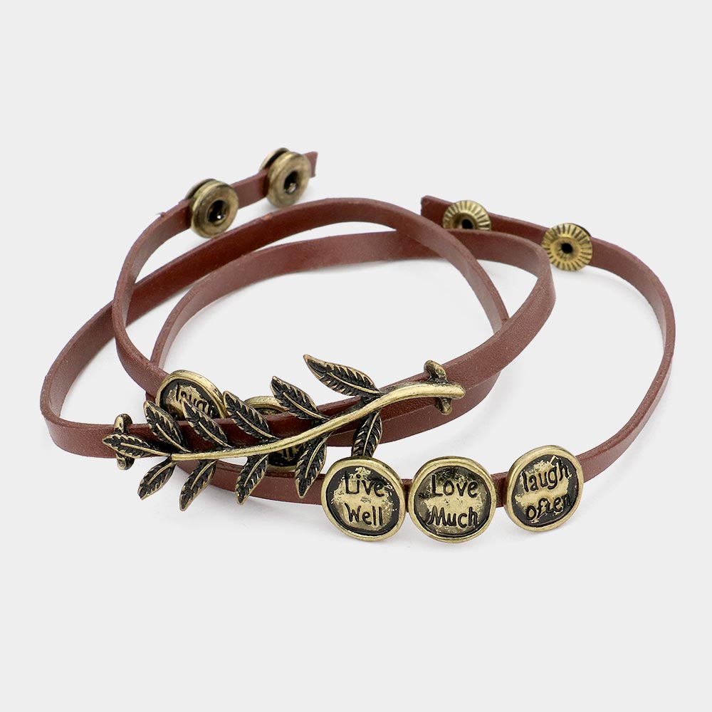 Message Disc Cluster Laurel Faux Leather Wrap Bracelet