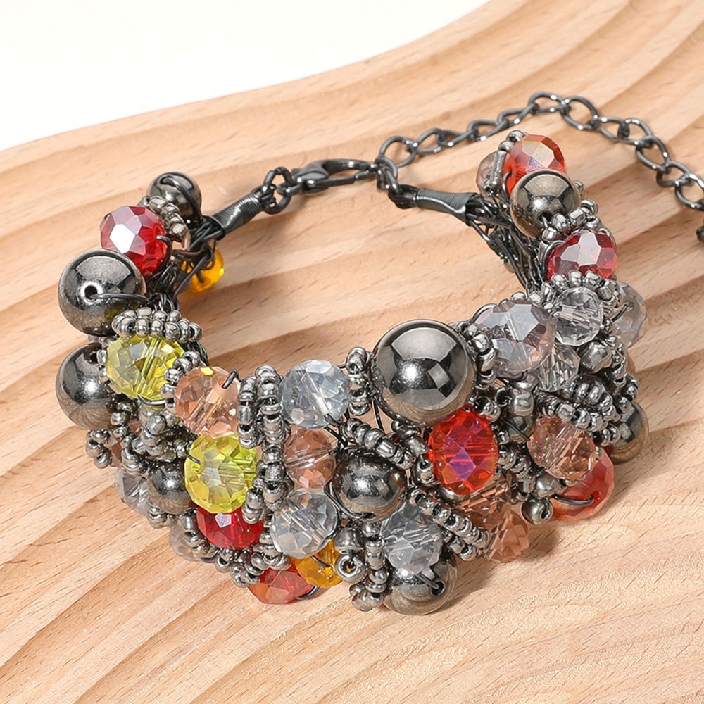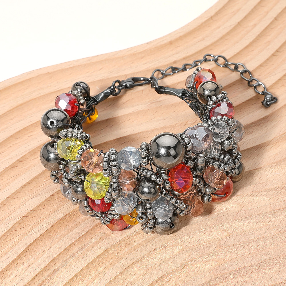 Metal Ball Faceted Beads Ball Wire Beaded Wide Bracelet