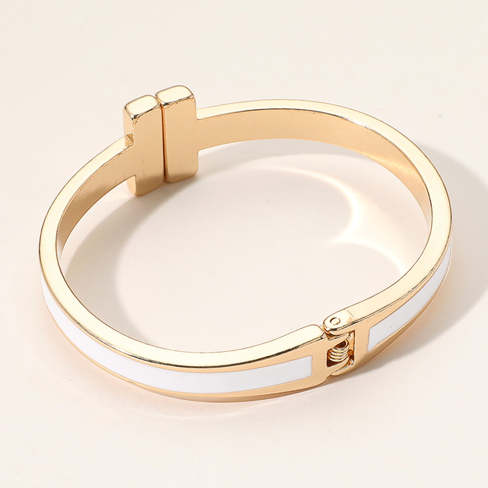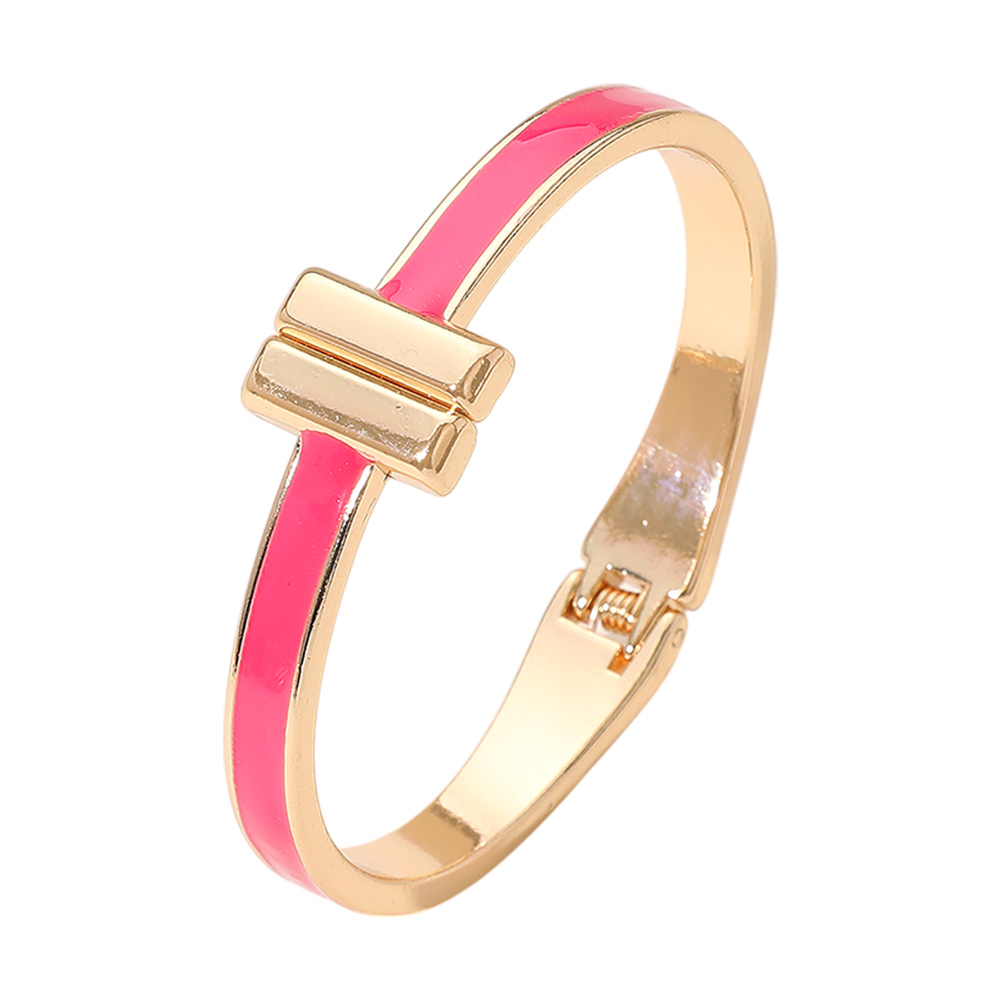 Metal Bar Tip Enamel Hinged Bangle Bracelet