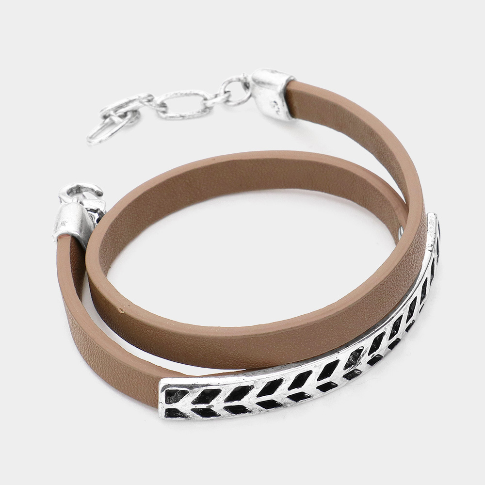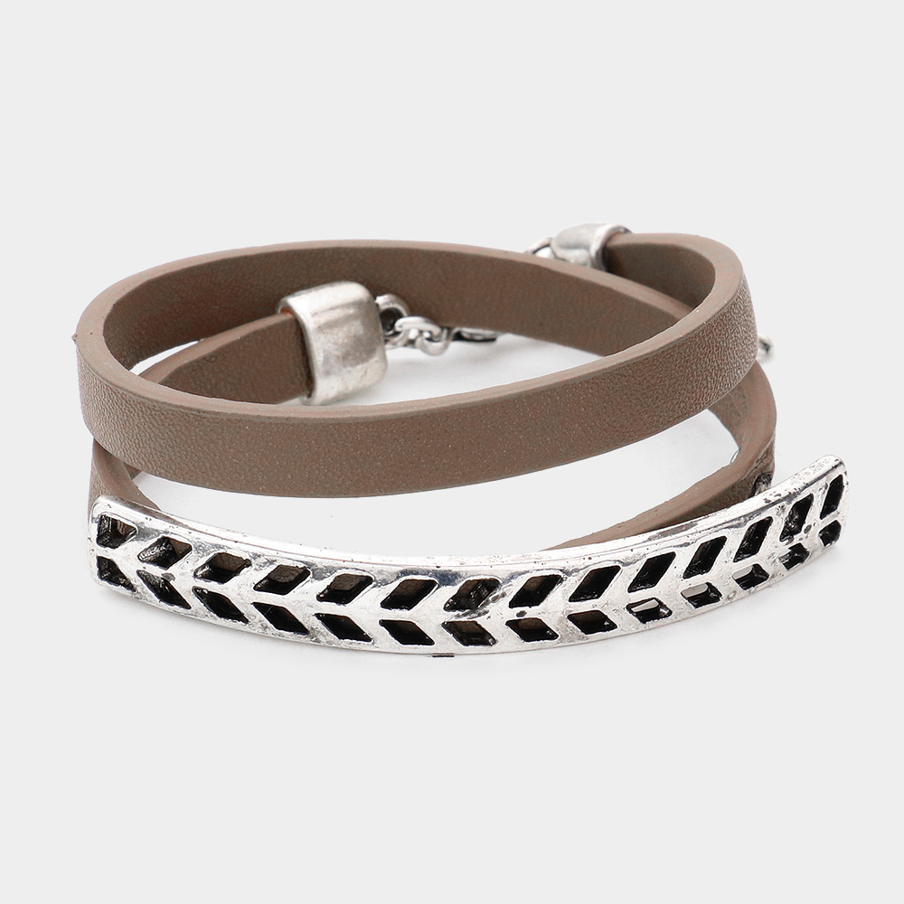 Metal detail faux leather wrap bracelet