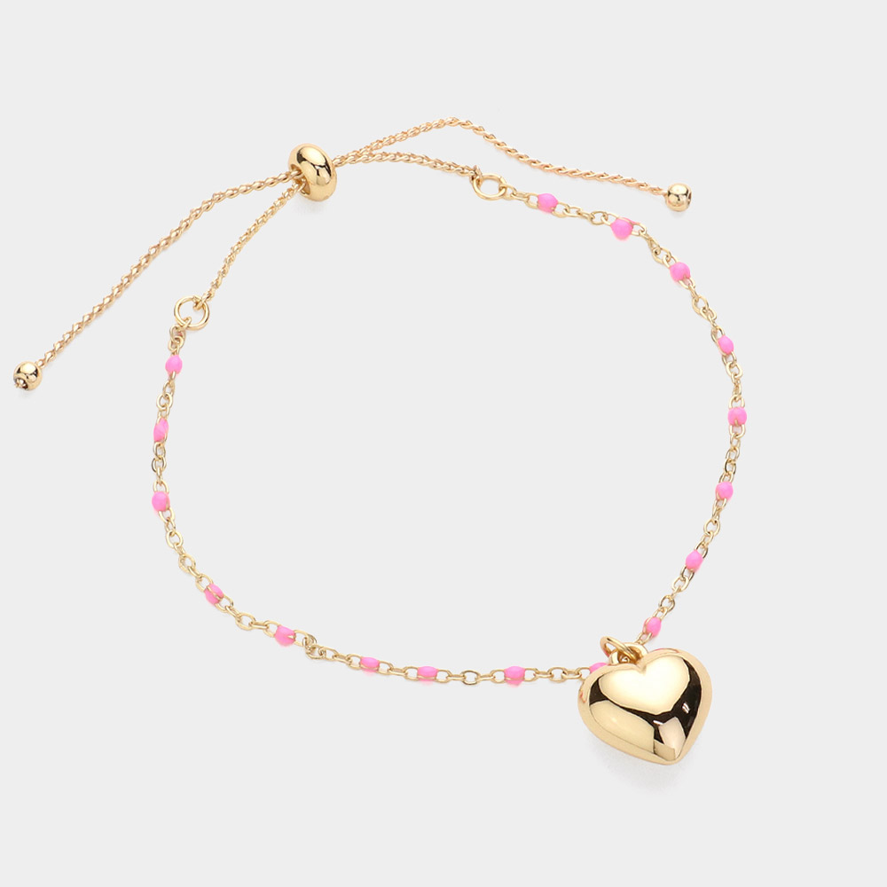 Metal Heart Charm Beads Station Pull Tie Bracelet