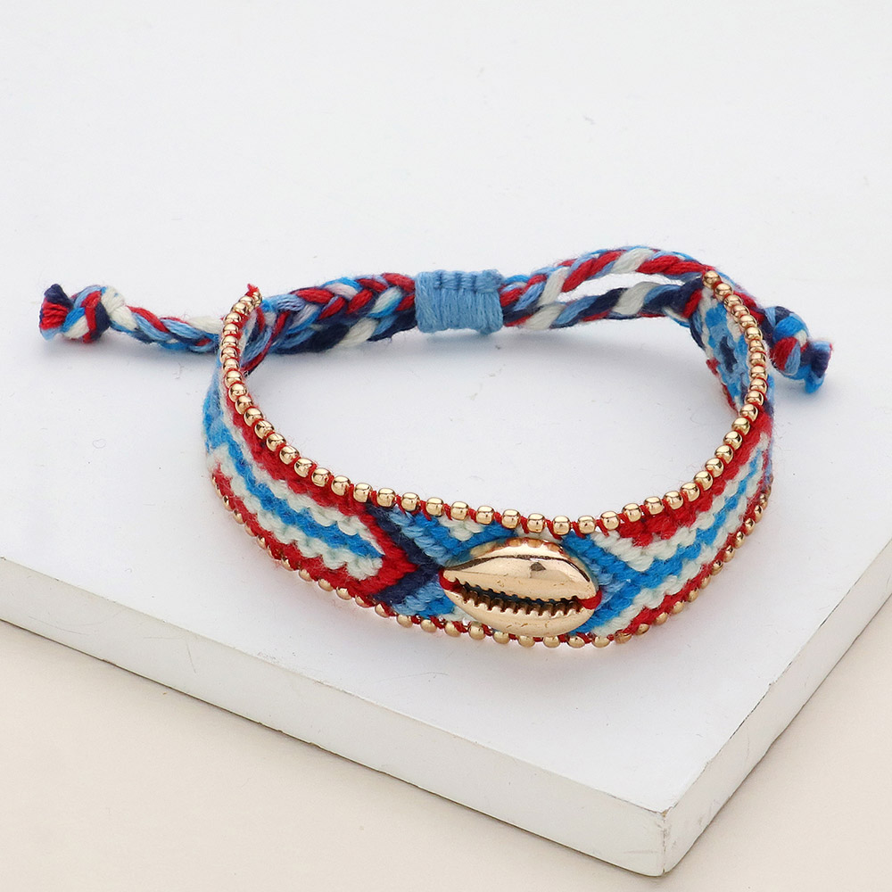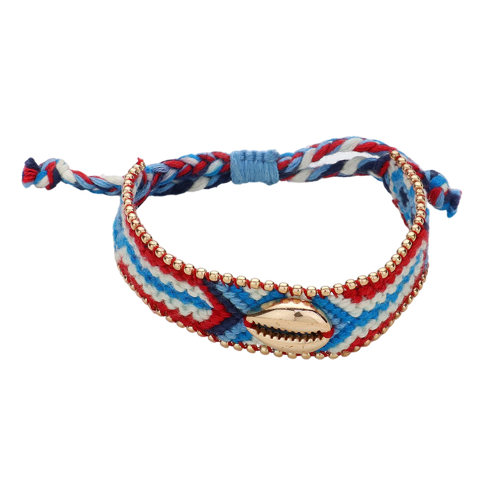 Metal Puka Shell Pointed Aztec Pattern Threaded Adjustable Cinch Pull Tie Bracelet
