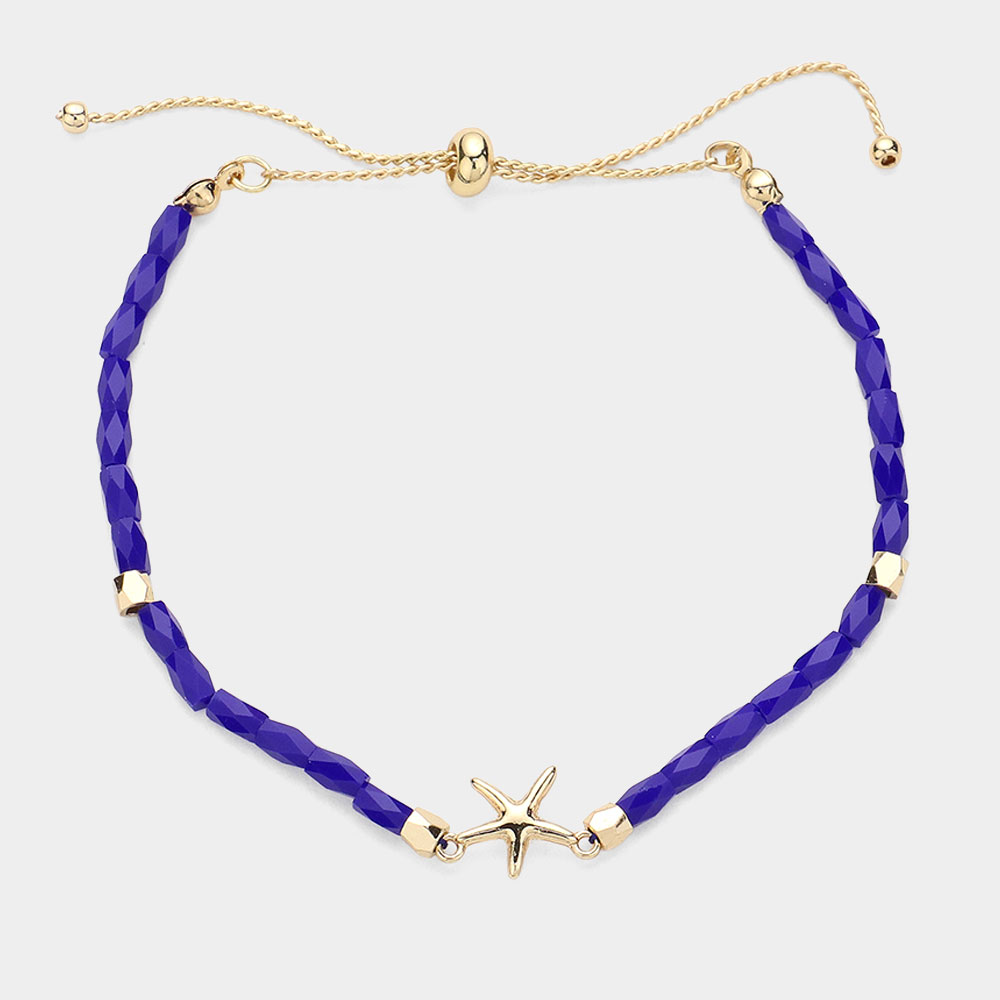 Metal Starfish Pointed Faceted Beaded Pull Tie Bracelet