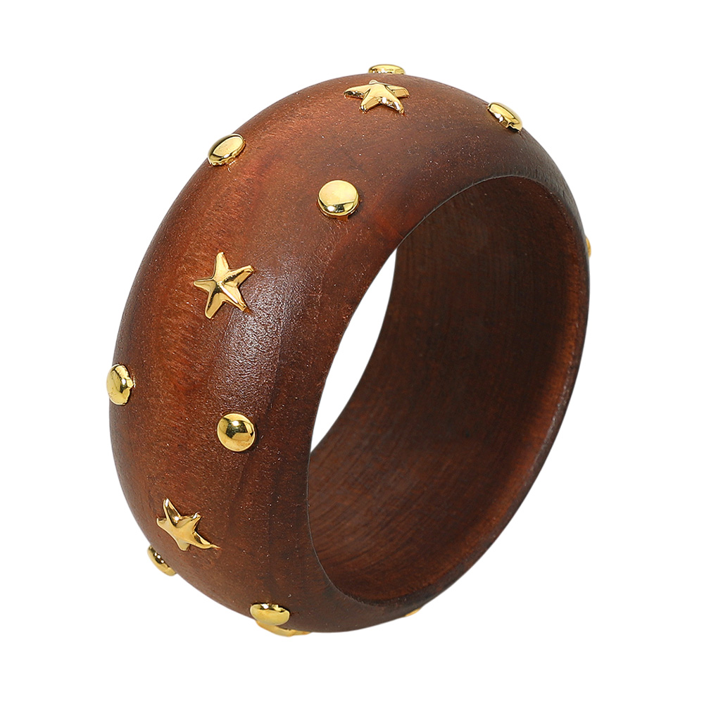 • Add a touch of celestial charm to your look with this wood-inspired bangle featuring star and stud embellishments. Perfect for pairing with boho, casual, or statement styles, this bracelet combines a natural finish with a bold, artistic flair for standout everyday elegance.