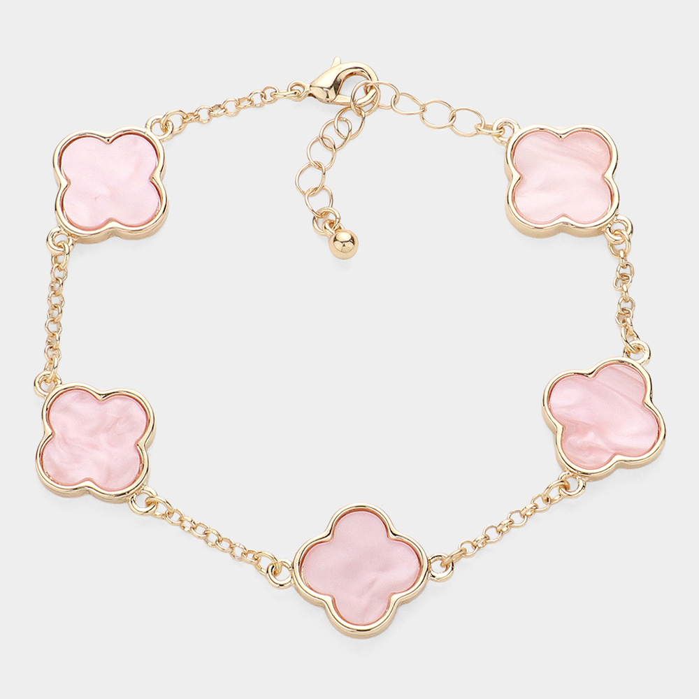 Mother Of Pearl Quatrefoil Bezel Station Bracelet