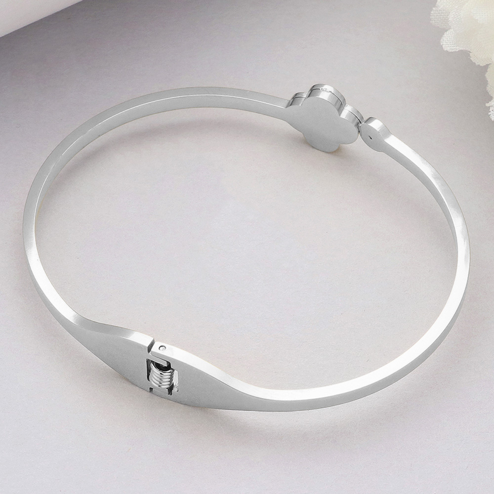Quatrefoil Pointed Stainless Steel Hinged Bangle Bracelet