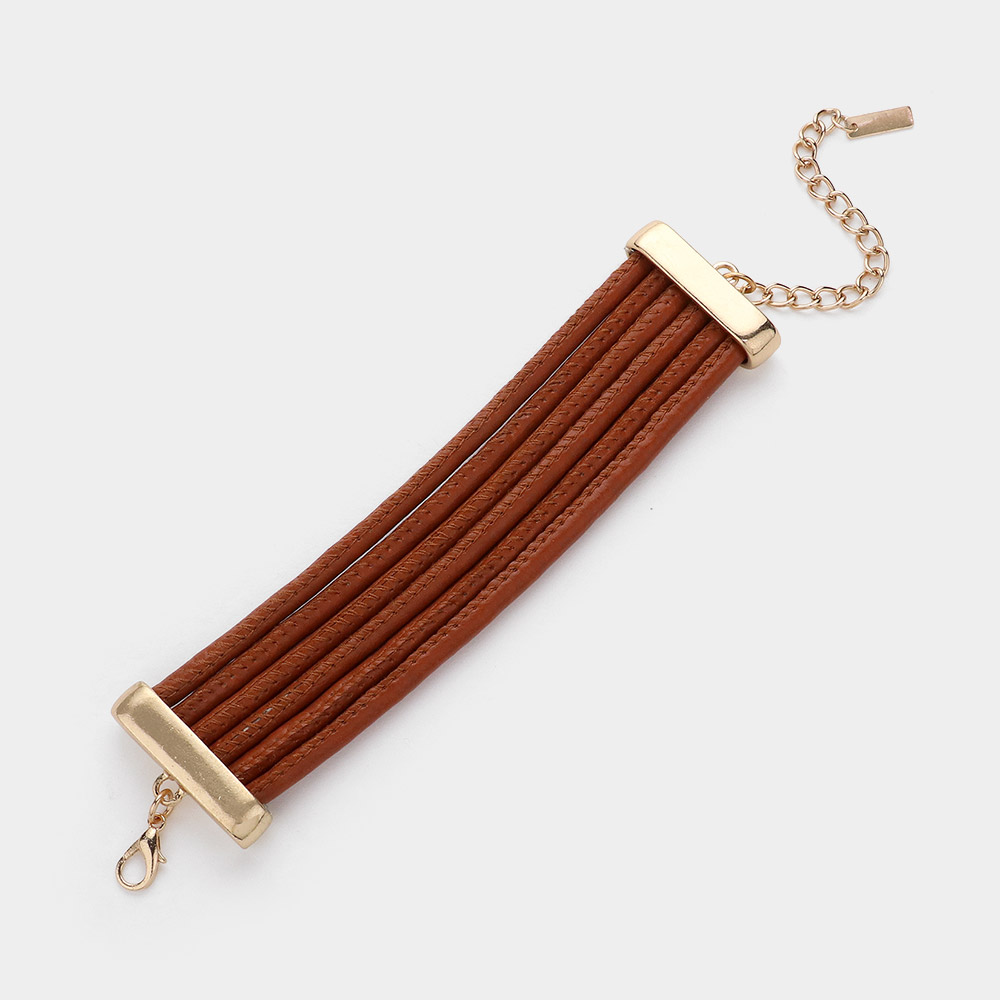 Faux Leather Metal Triple Abstract Plate Link Dangle Earrings