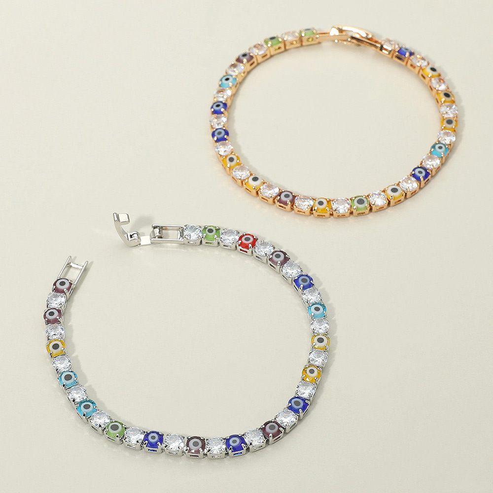 Multicolor Evil Eye CZ Stone Cluster Link Bracelet