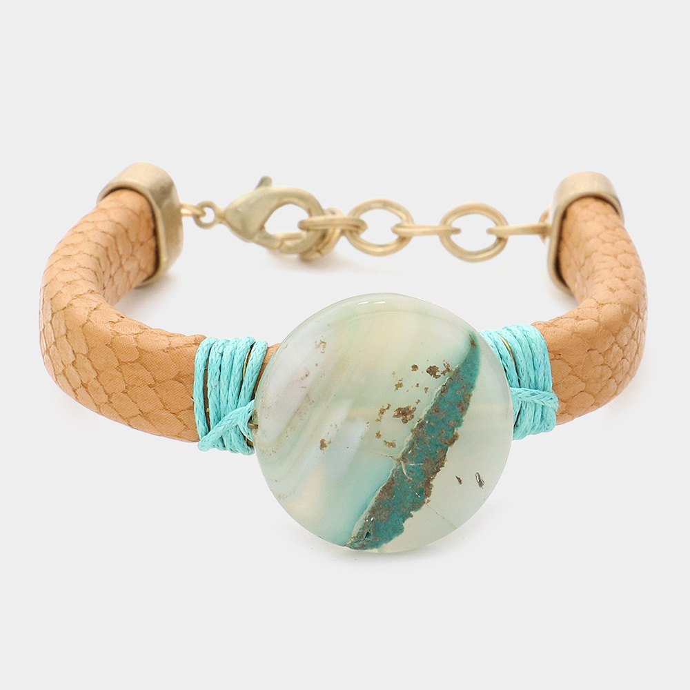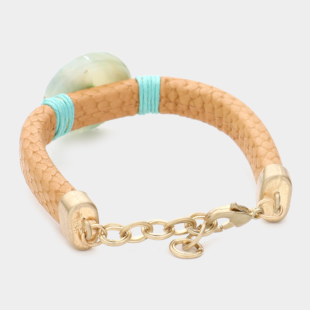 Metal Heart Teardrop Natural Stone Link Dangle Earrings