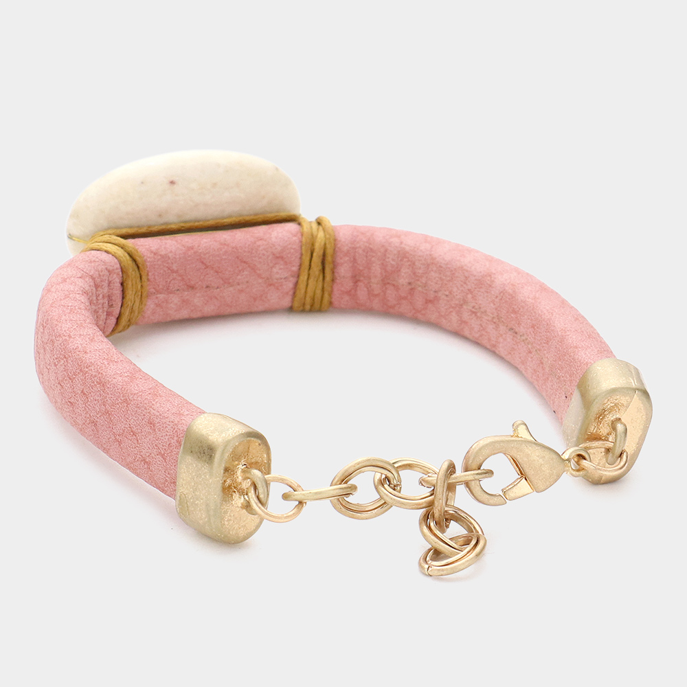 Textured Metal Round Natural Stone Teardrop Link Pendant Long Necklace