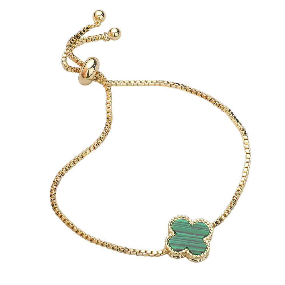 Natural Stone Quatrefoil Cluster Pointed Adjustable Cinch Pull Tie Bracelet