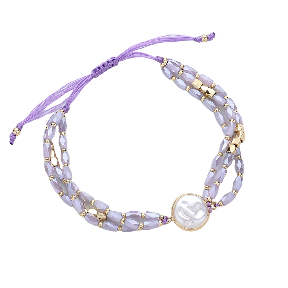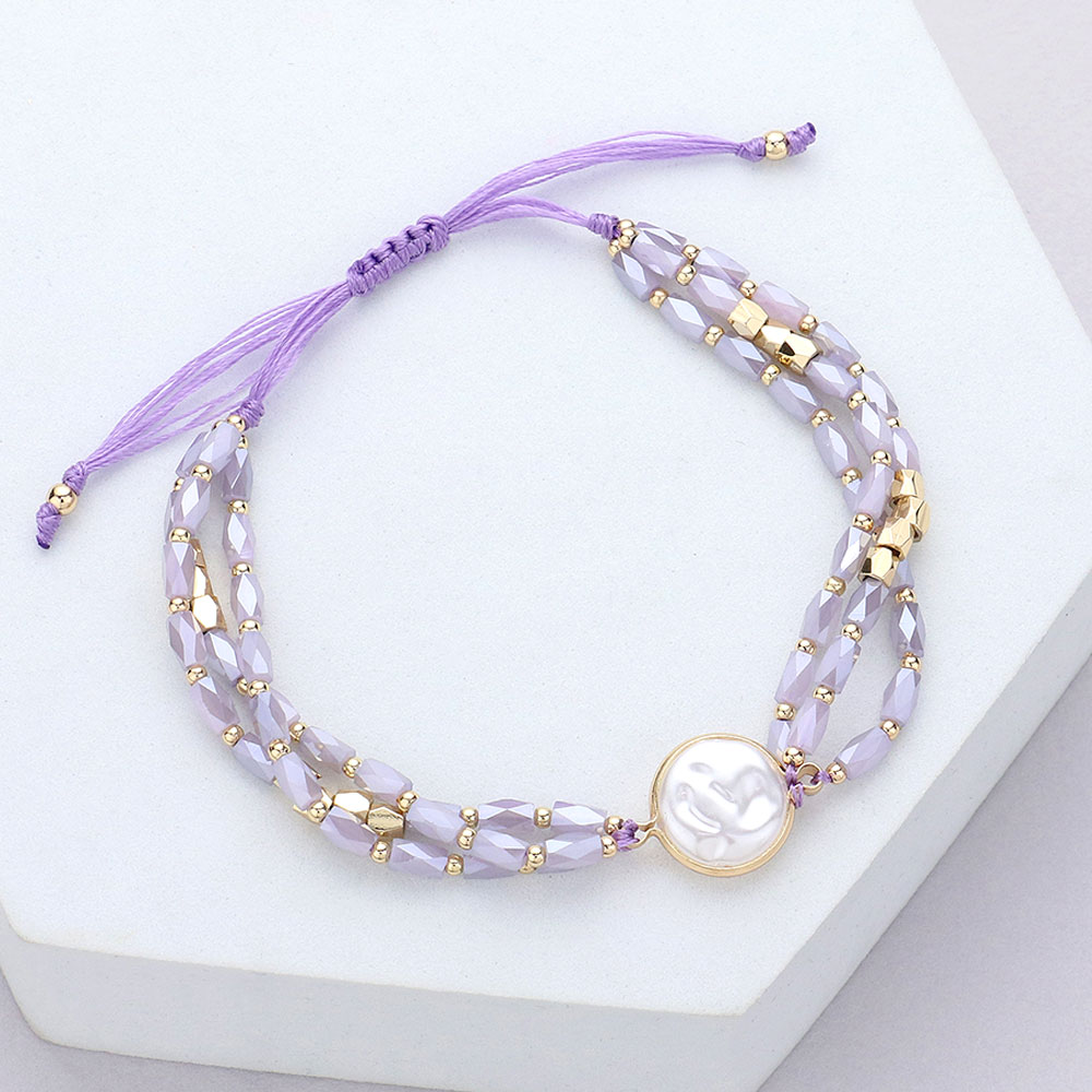 Pearl Pointed Faceted Beaded Cinch Pull Tie Bracelet