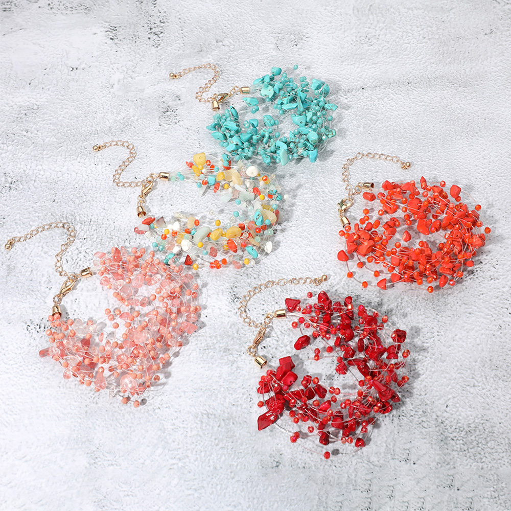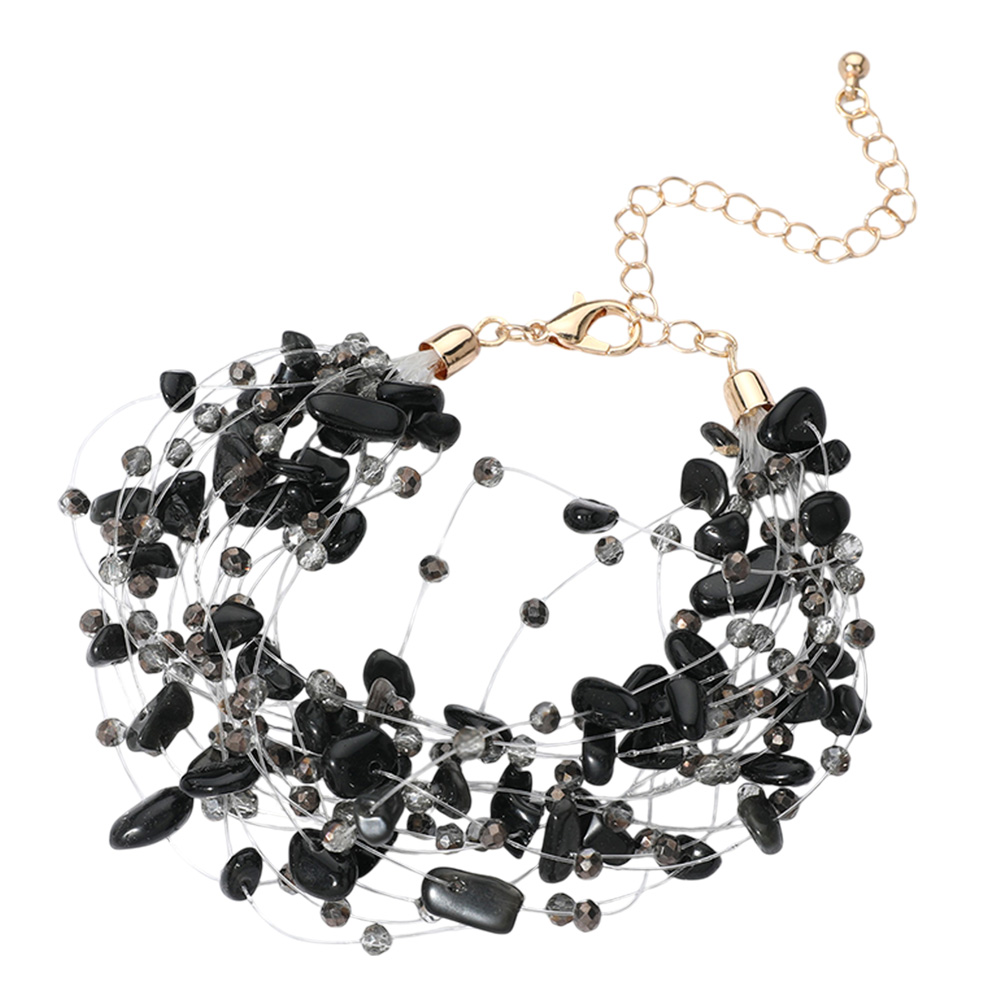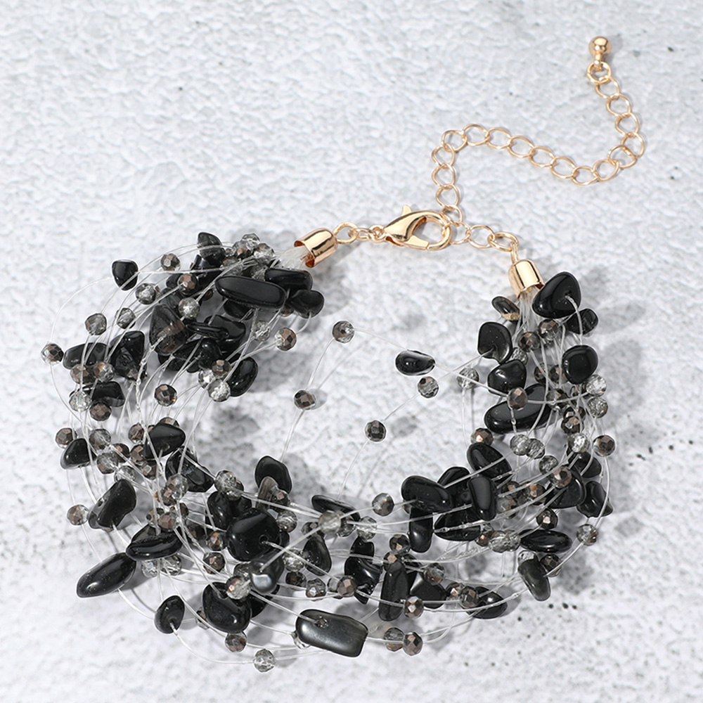 Pebble Faceted Beads Transparent Thread Multi Layered Strand Bracelet