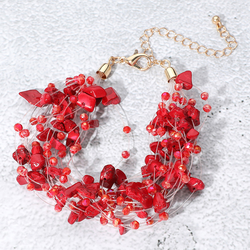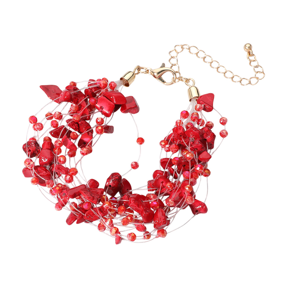 Pebble Faceted Beads Transparent Thread Multi Layered Strand Bracelet