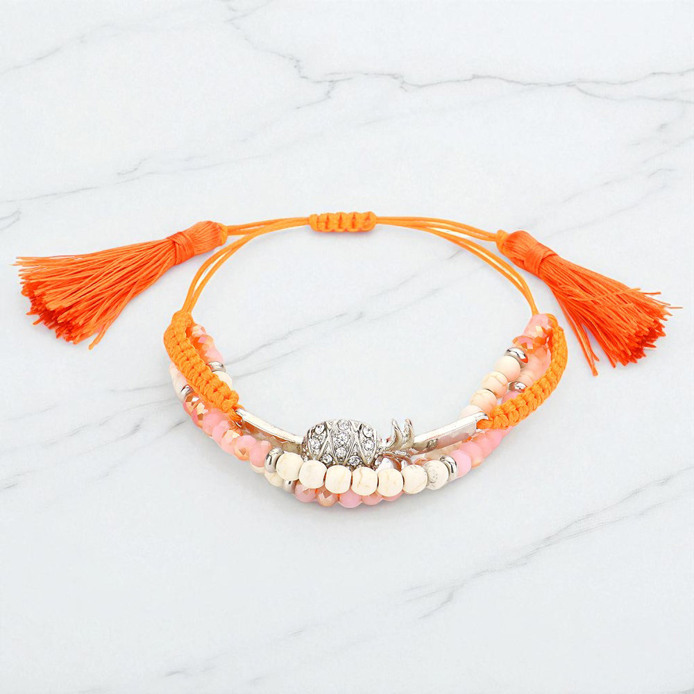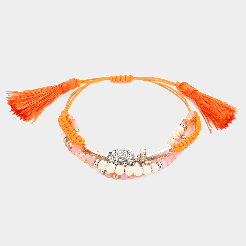 Pineapple Accented Double Tassel Adjustable Cinch Pull Tie Bracelet