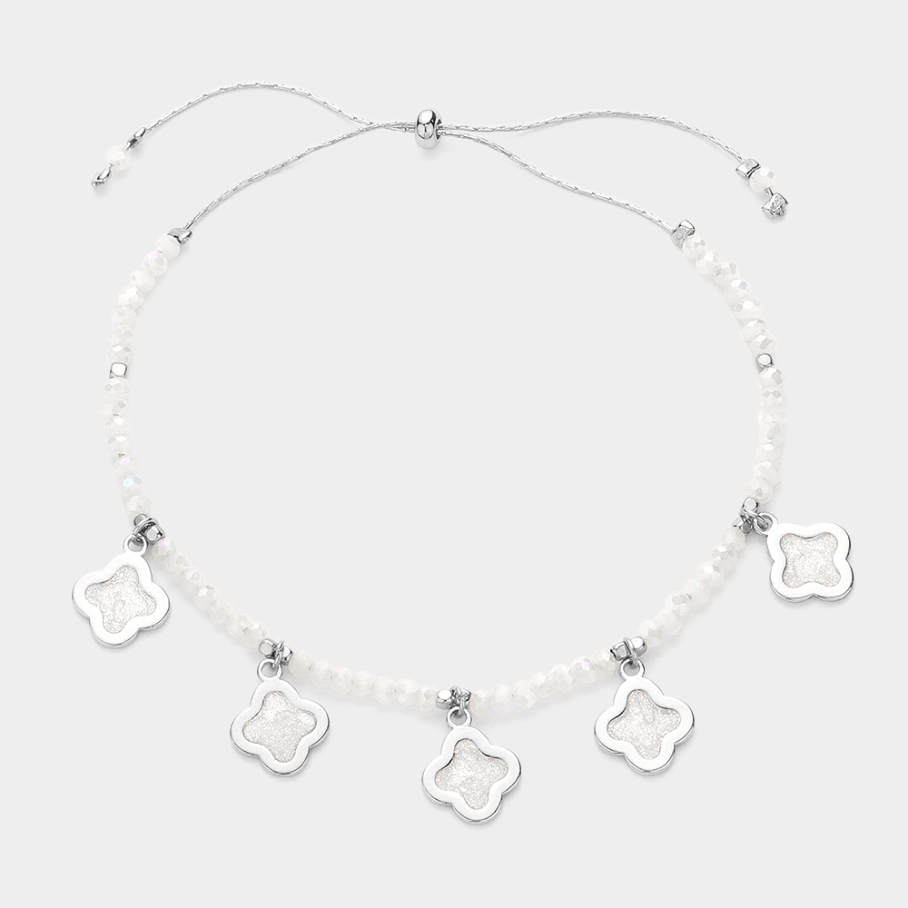 Quatrefoil Bezel Station Beaded Adjustable Pull Tie Bracelet