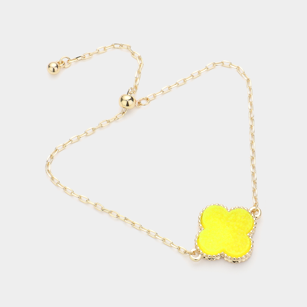 Quatrefoil Druzy Adjustable Pull Tie Bracelet