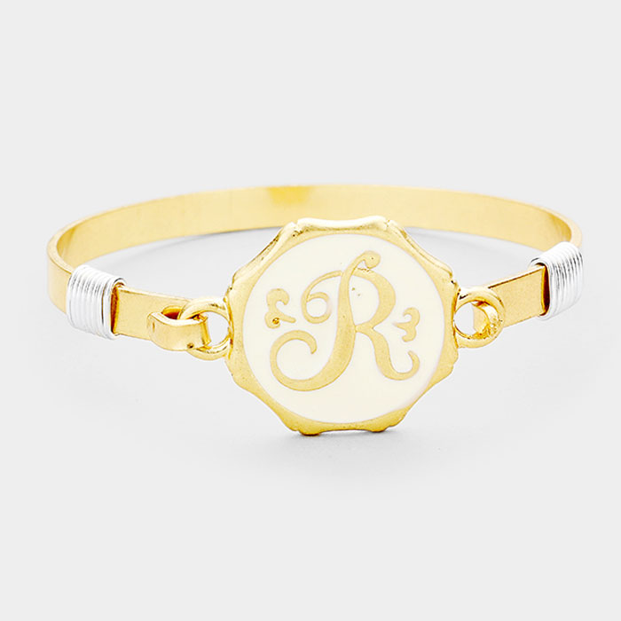 -R- Acrylic Initial Monogram Metal Disc Hook Bracelet