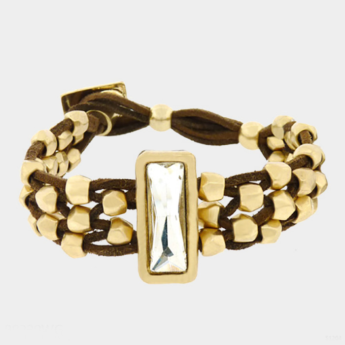 Rectangle Crystal Chunky Metal Bead Cluster Suede Bracelet