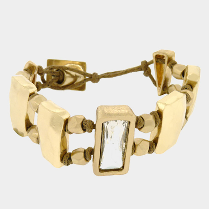Rectangle Crystal Chunky Metal Bead Suede Bracelet