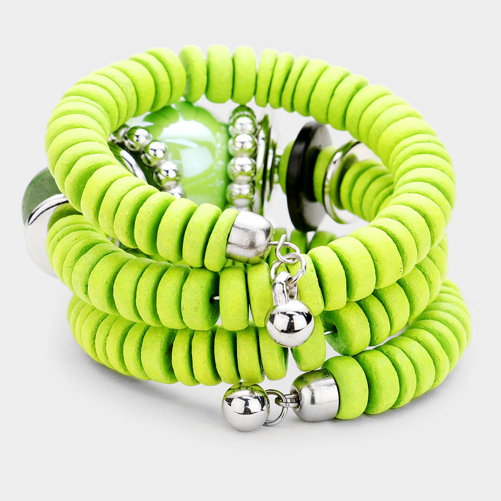 4PCS - Wood Ball Multi Beaded Stretch Bracelets
