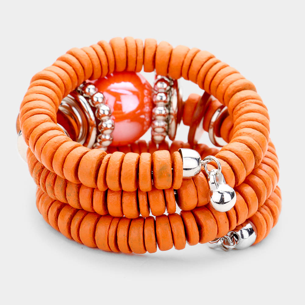 Resin Ball Accented Wood Beaded Adjustable Bracelet