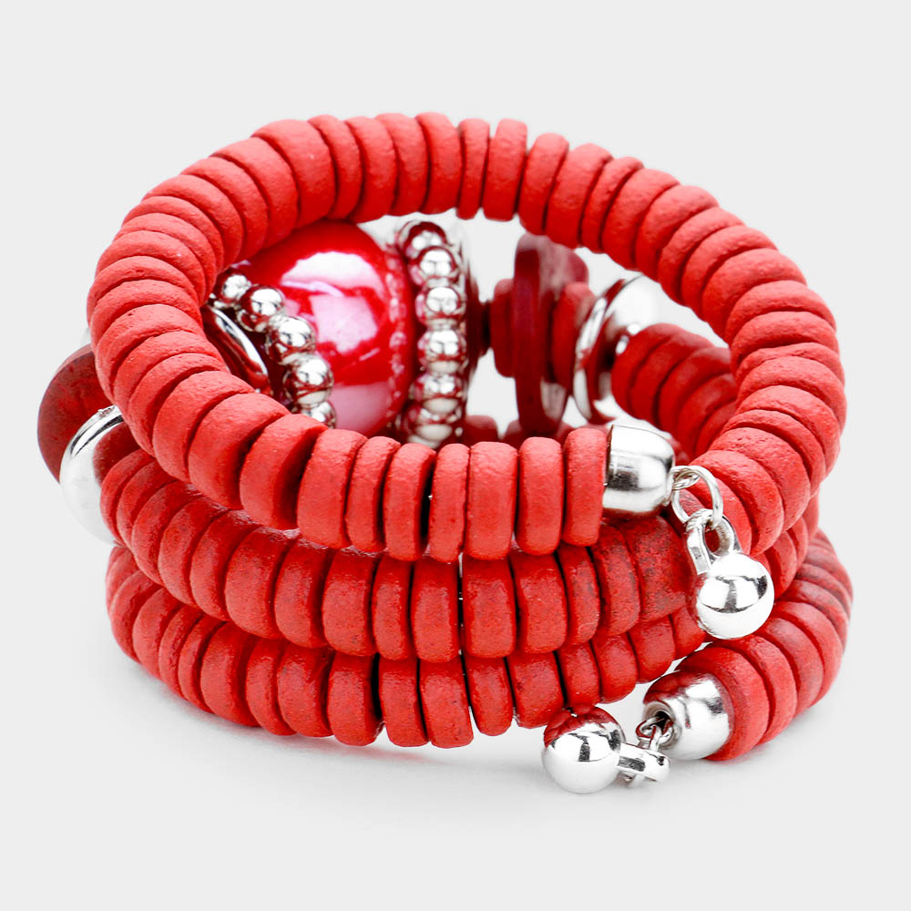 Resin Ball Accented Wood Beaded Adjustable Bracelet