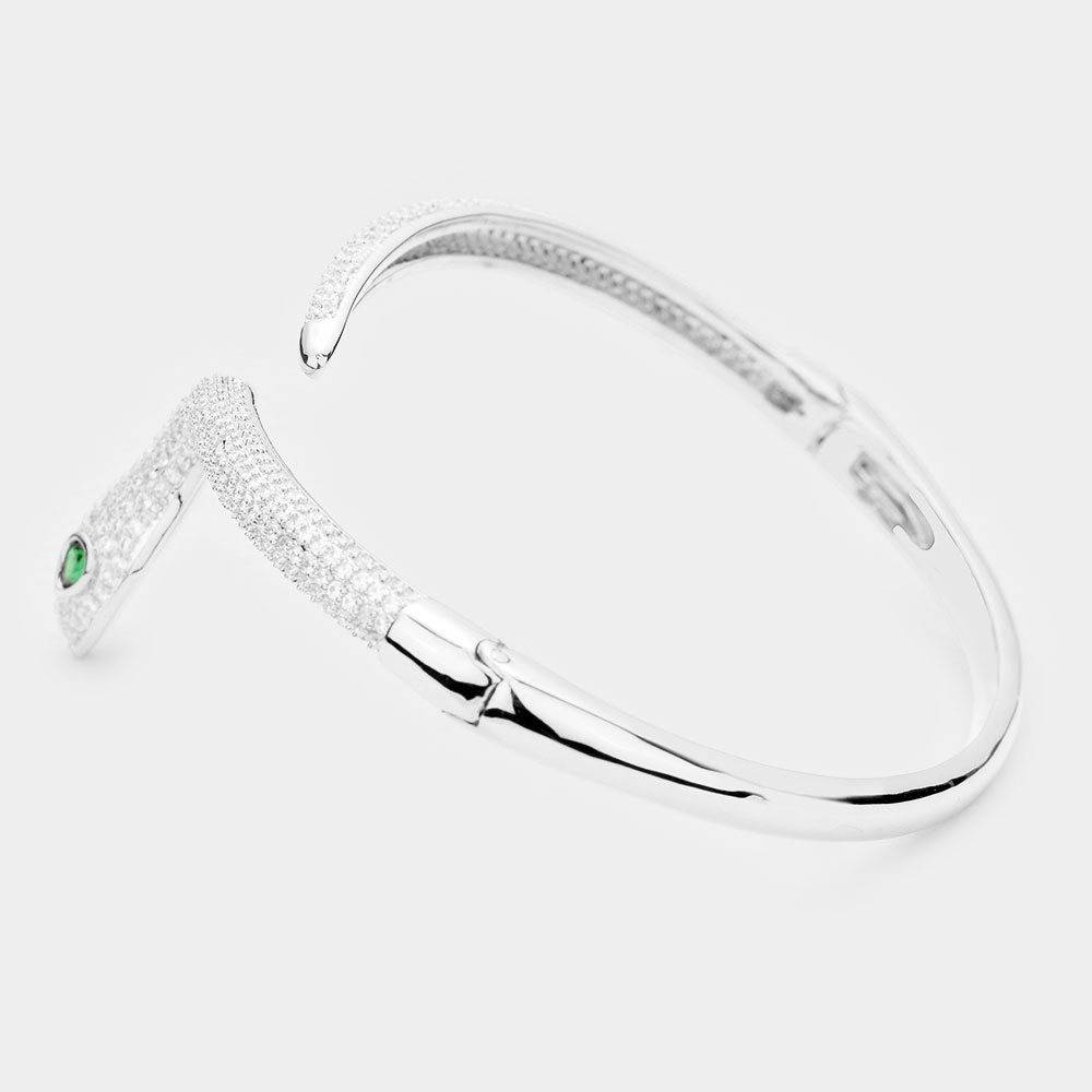 Rhodium Plated AAA CZ Cubic Zirconia Snake Hinged Bracelet