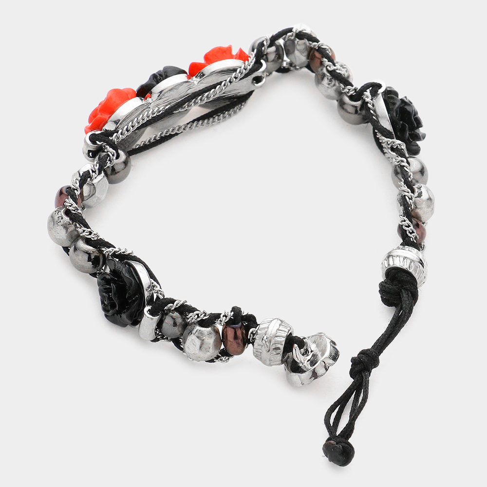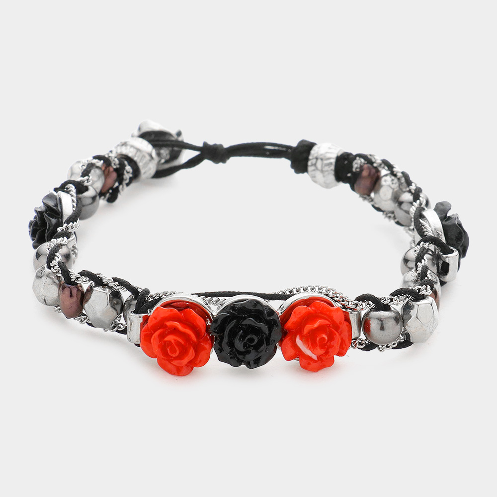 Rose Cluster Metal Bead Bracelet