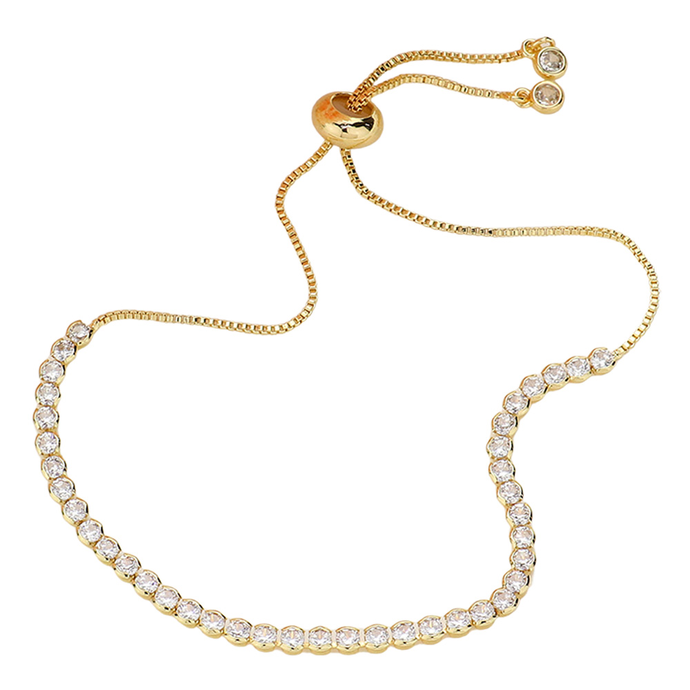 Round CZ Stone Bezel Adjustable Pull Tie Bracelet Round CZ Stone Bezel Adjustable Pull Tie Bracelet