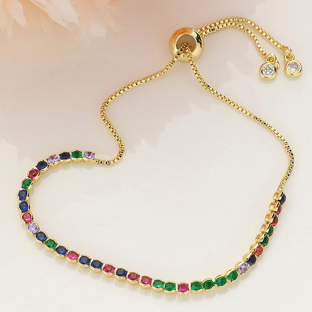 • Elegant adjustable chain bracelet featuring a sleek row of sparkling crystal accents. Designed with a secure sliding clasp for a perfect fit, this piece blends classic shine with modern ease. Ideal for stacking or wearing solo for a refined, understated finish.