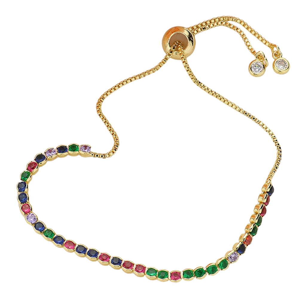 Round CZ Stone Bezel Adjustable Pull Tie Bracelet