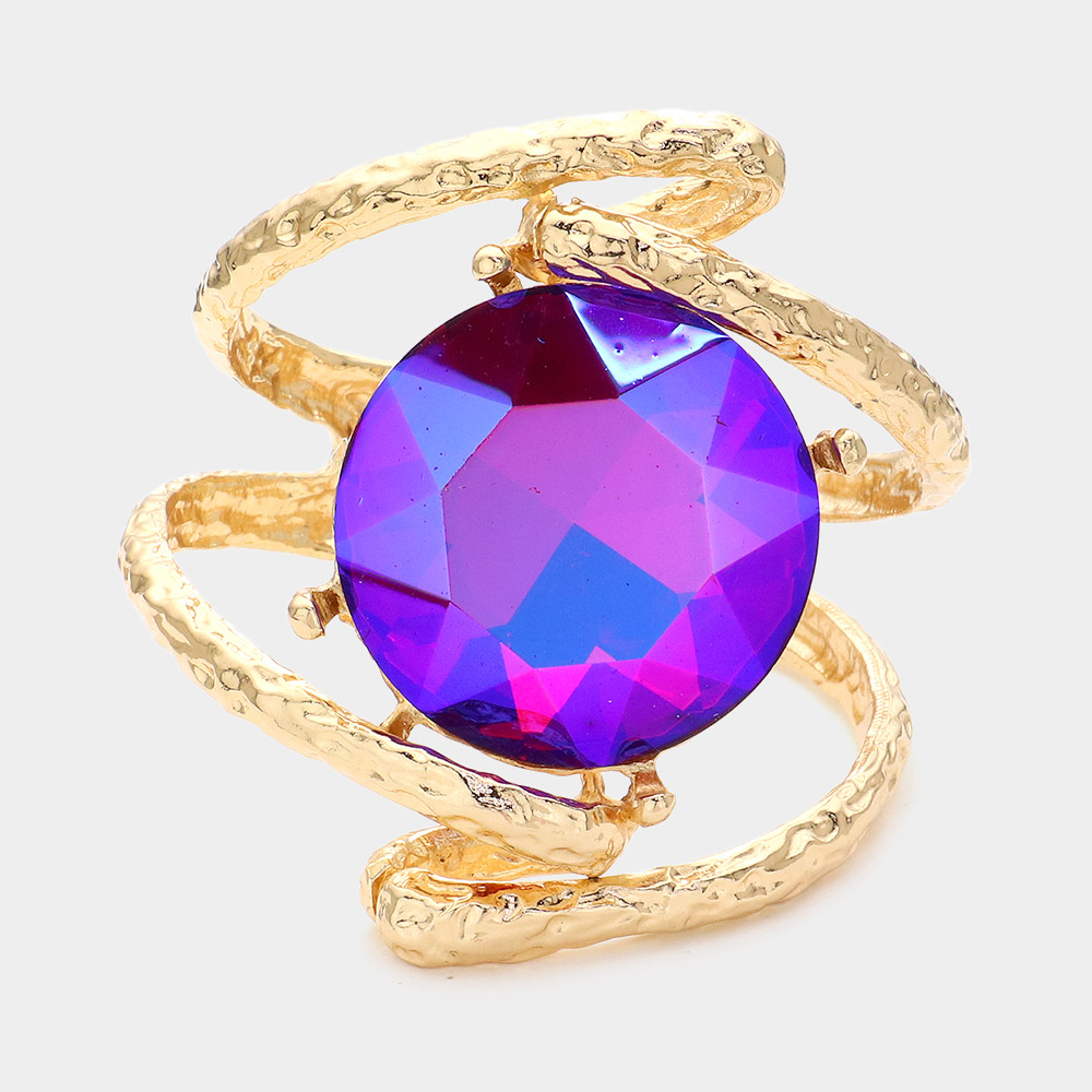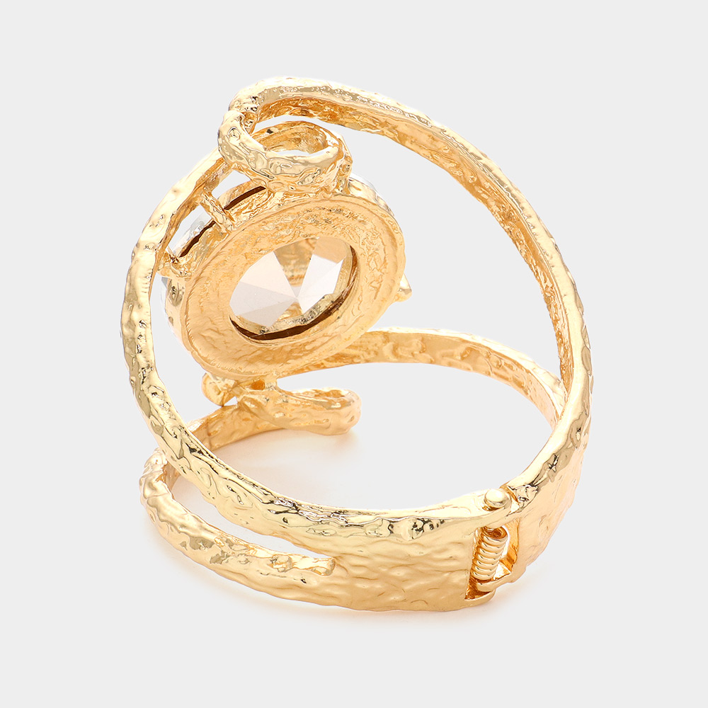 • Bold statement adjustable snake ring with hammered texture and oversized gemstone. Eye-catching accessory for fashion-forward styling and standout elegance.
