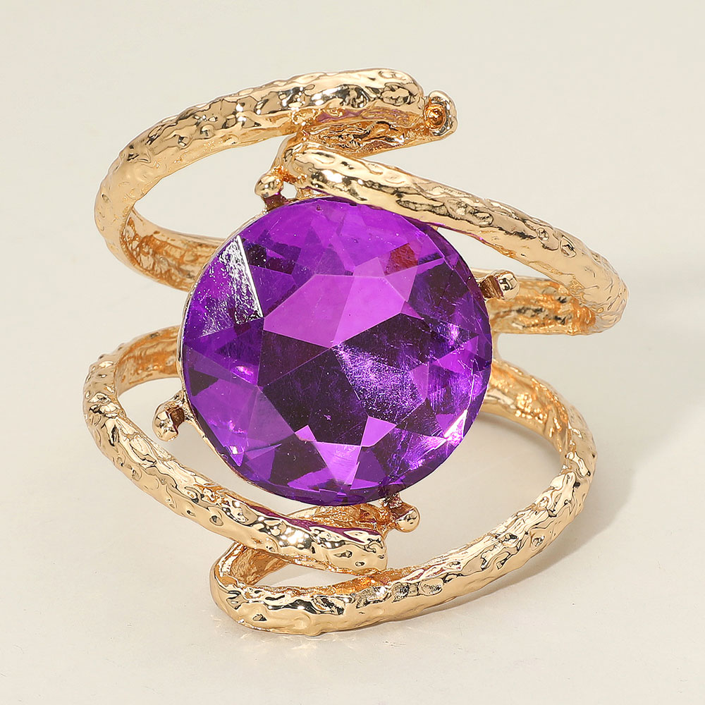 • Bold statement adjustable snake ring with hammered texture and oversized gemstone. Eye-catching accessory for fashion-forward styling and standout elegance.