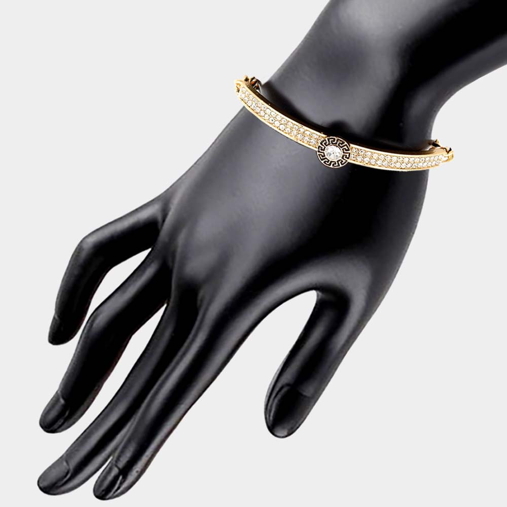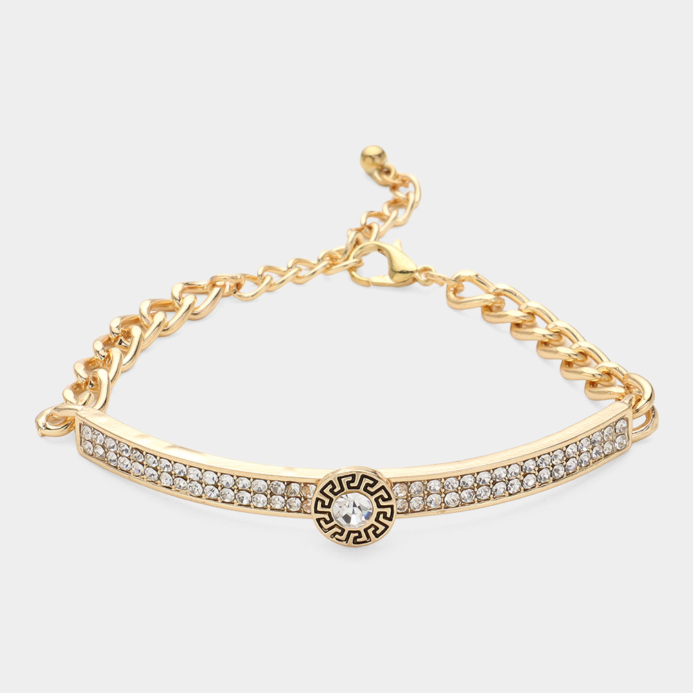 Round Stone Centered Rhinestone Embellished Bracelet