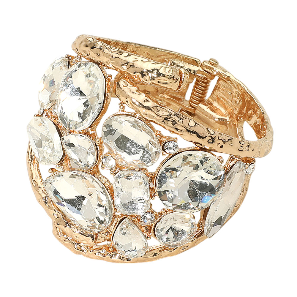 Round Teardrop Oval Stone Embellished Wide Hinged Bangle Bracelet