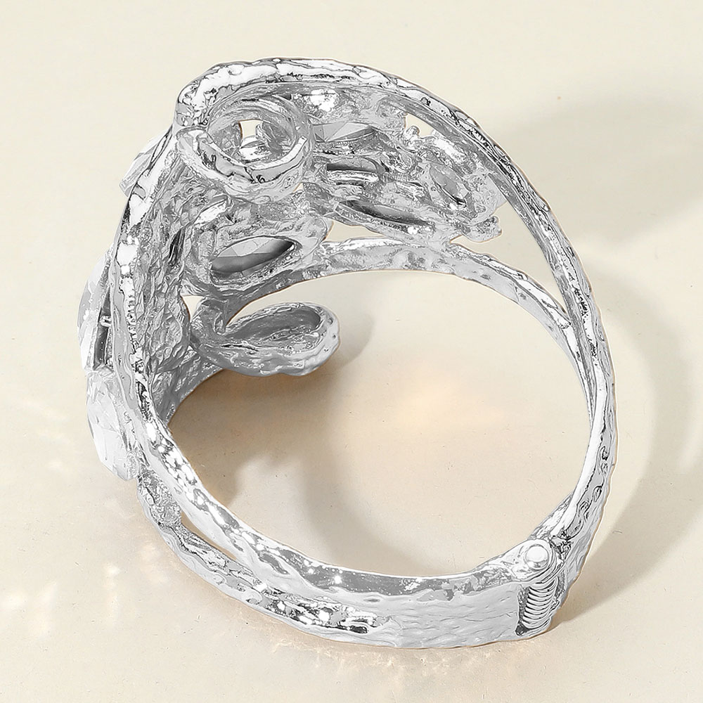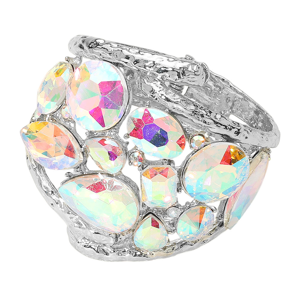 Round Teardrop Oval Stone Embellished Wide Hinged Bangle Bracelet