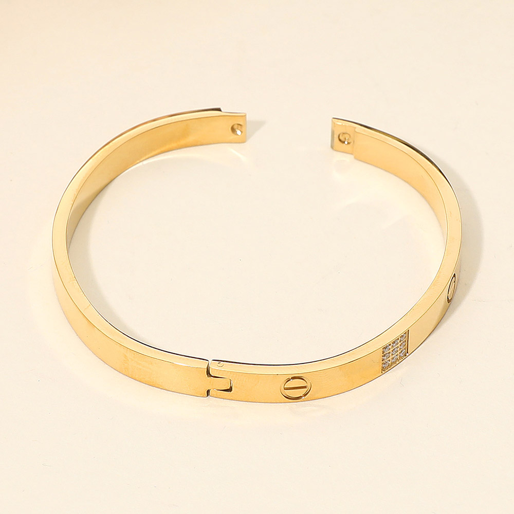 • Elegant hinged bangle bracelet featuring sleek geometric accents and a polished finish for a timeless, modern appeal. Perfect for both everyday wear and special occasions, this minimalist accessory adds sophistication and understated luxury to any outfit.