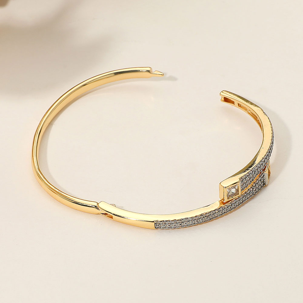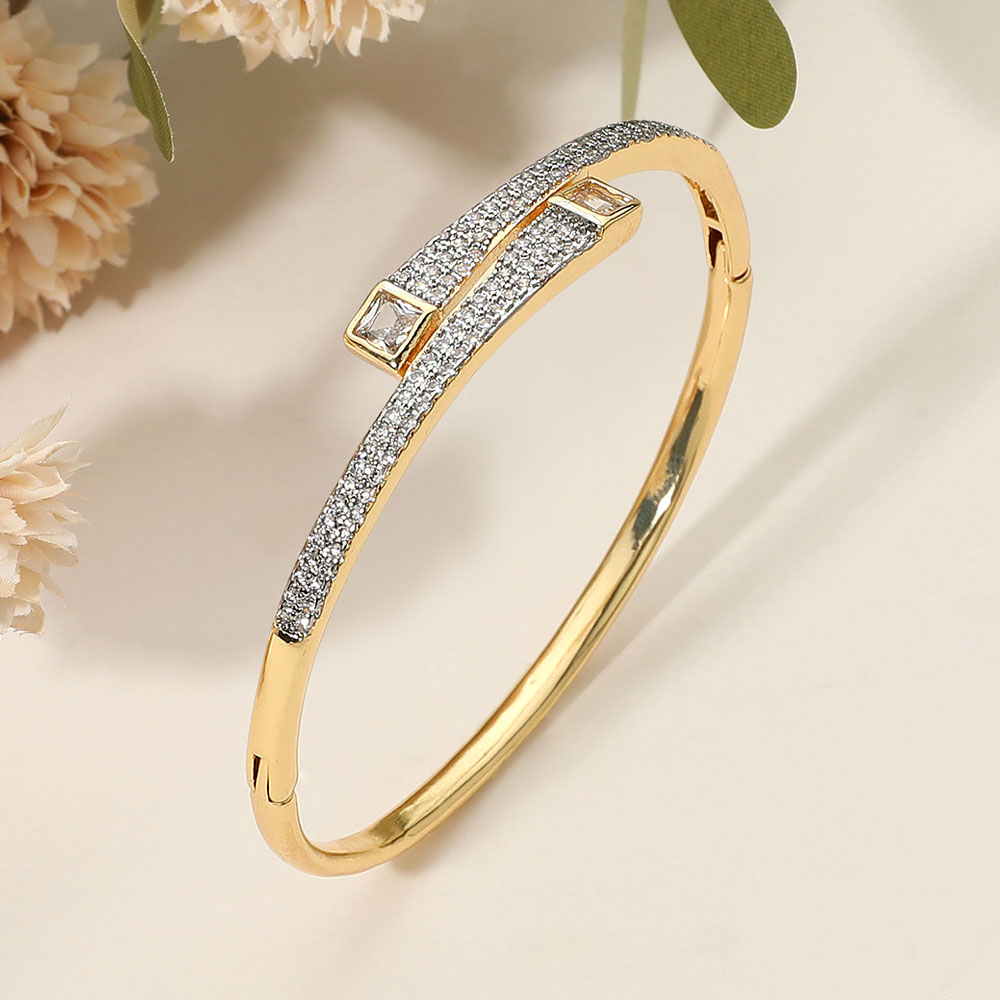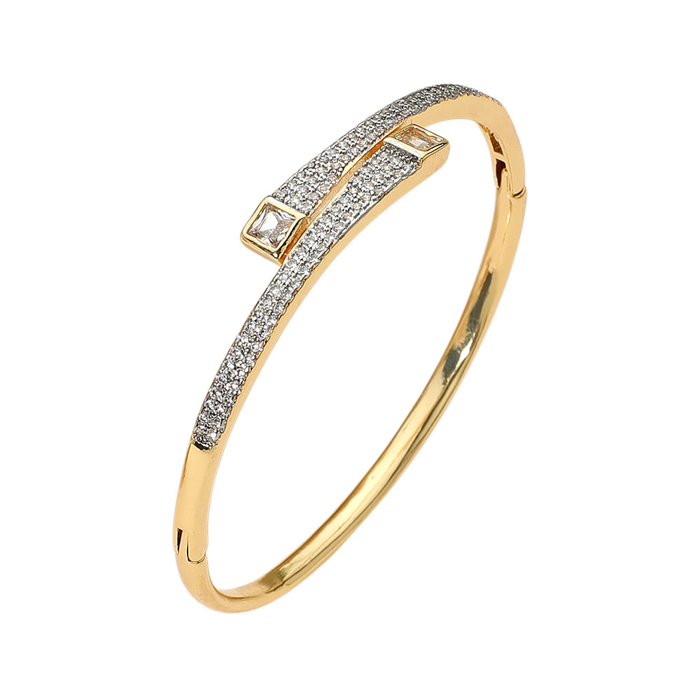 Details • Size : 0.4" H, 2.4" D • Hinged Closure • Water Resistant • Sleek and modern bangle bracelet featuring a refined pave design and a distinctive square accent. Perfect for adding a subtle yet sophisticated sparkle to both casual and formal looks, offering timeless elegance for any occasion. • Hypoallergenic • Lead and Nickel Compliant