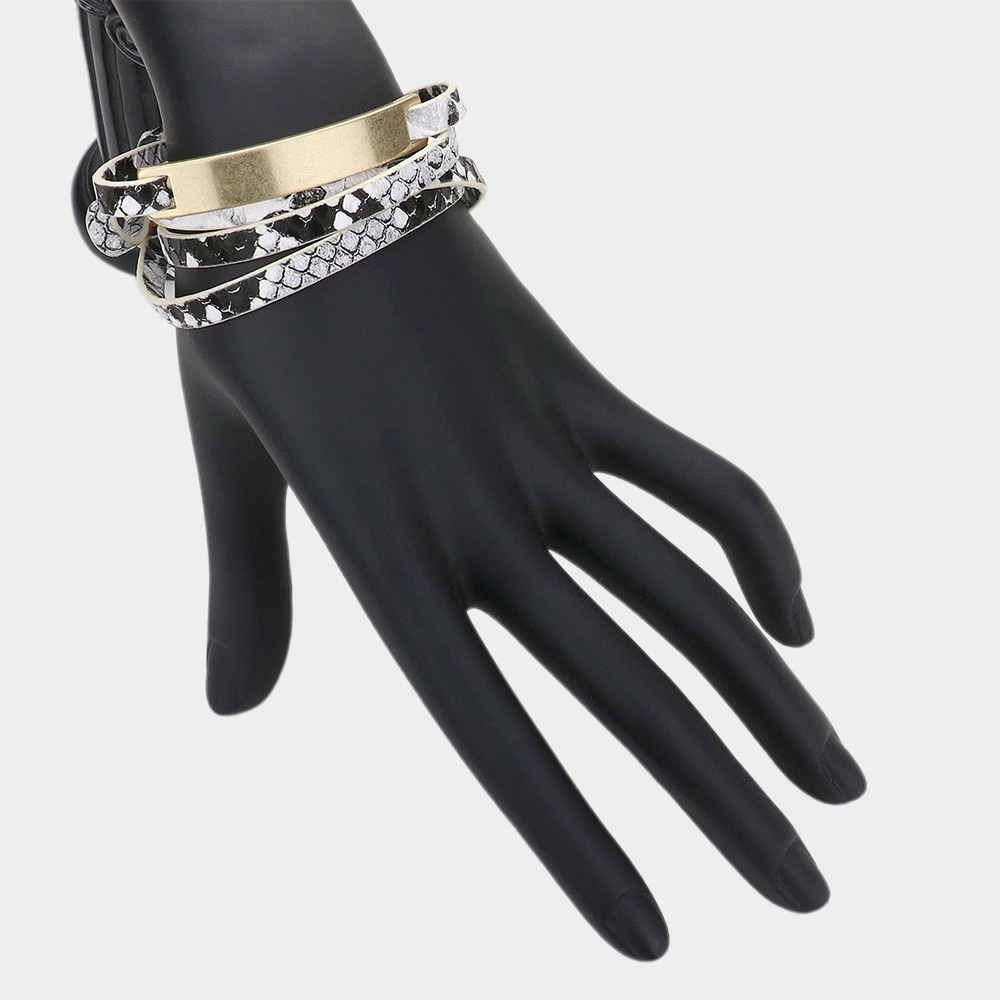 2PCS - Snake Skin Magnetic and Metal Chain Layered Bracelets