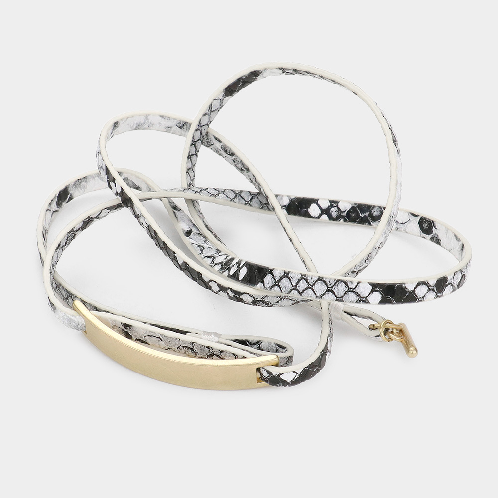Snake Pattern Faux Leather Wrap Toggle Bracelet