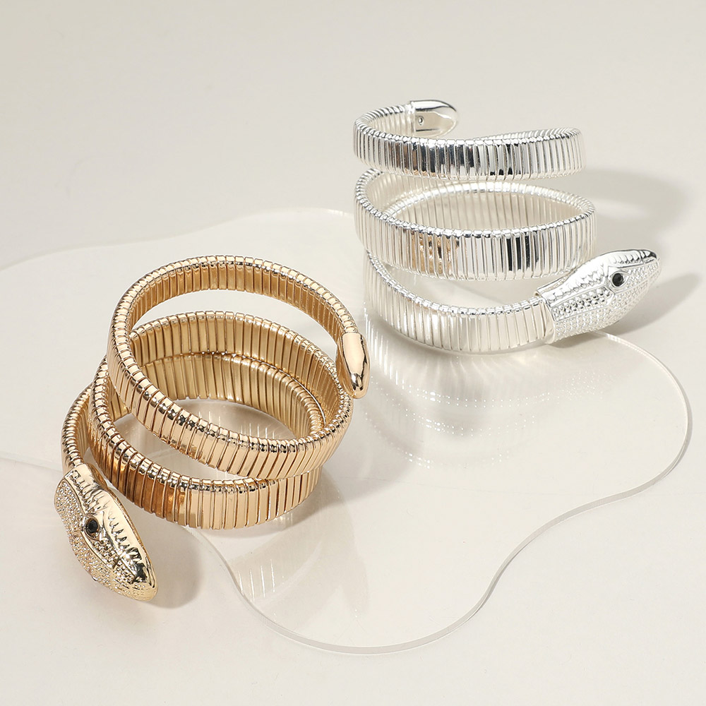 Snake Tip Ribbed Metal Wrapped Adjustable Bracelet