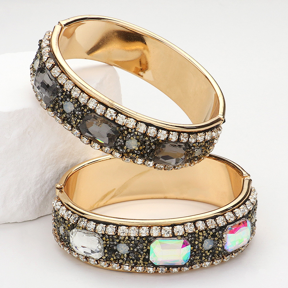 Sparkly Stone Embellished Hinged Bangle Bracelet