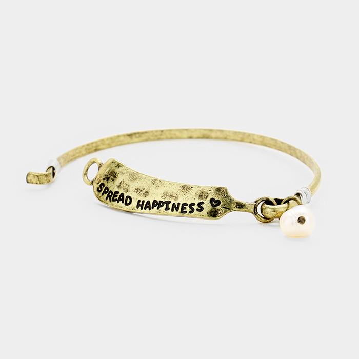 "Spread Happiness" Pearl Burnished Metal Hook Bracelet