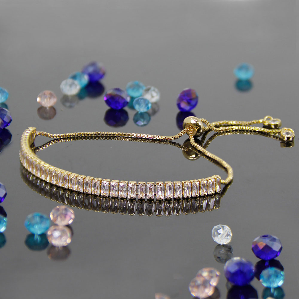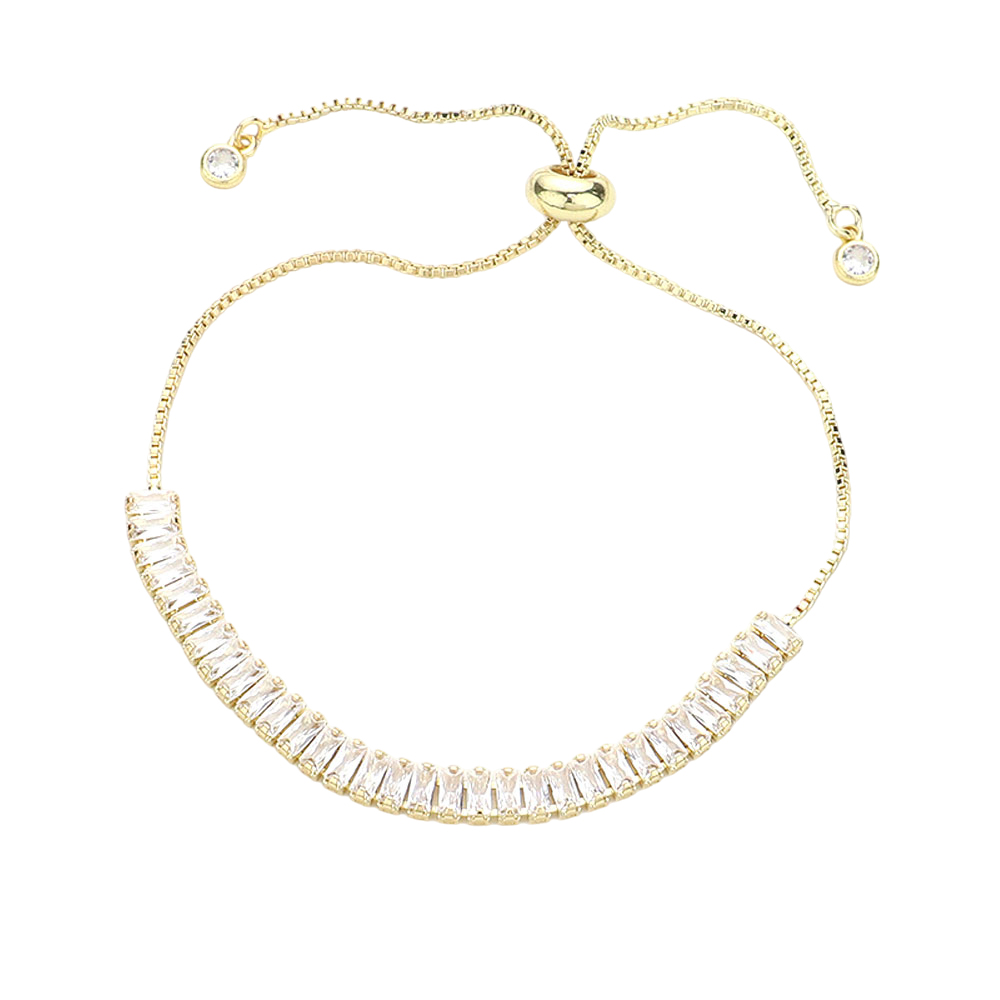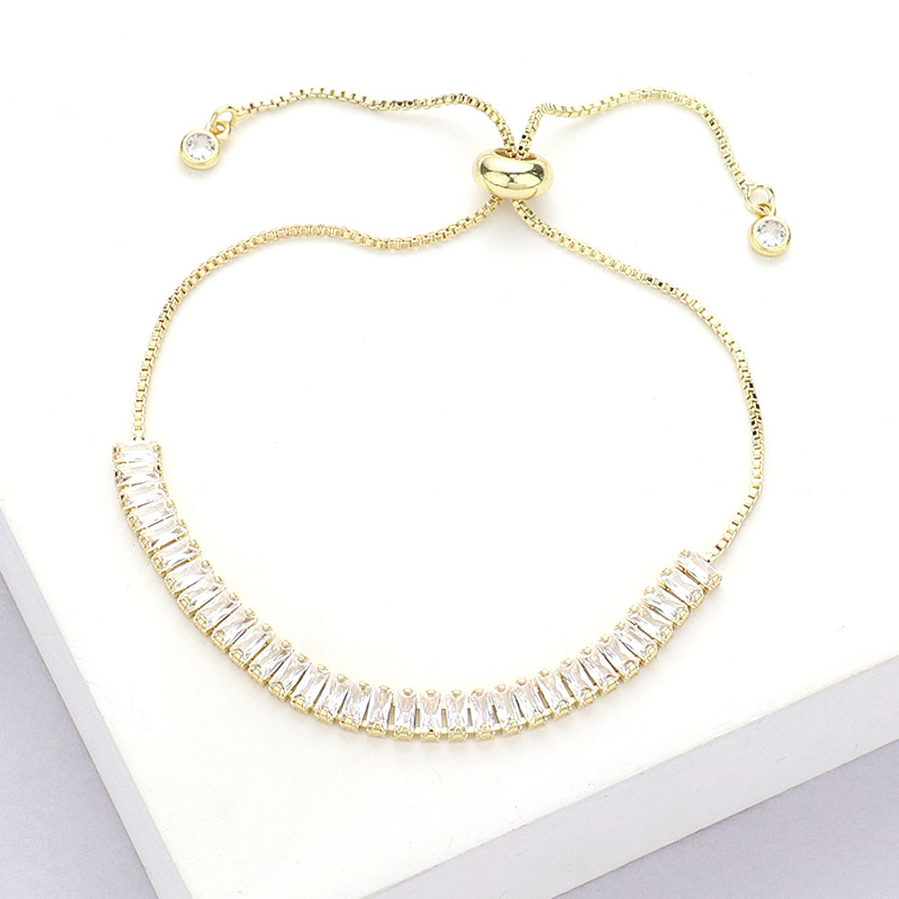 Stainless Steel Baguette CZ Stone Tennis Chain Pull Tie Adjustable Bracelet