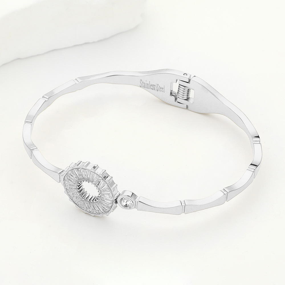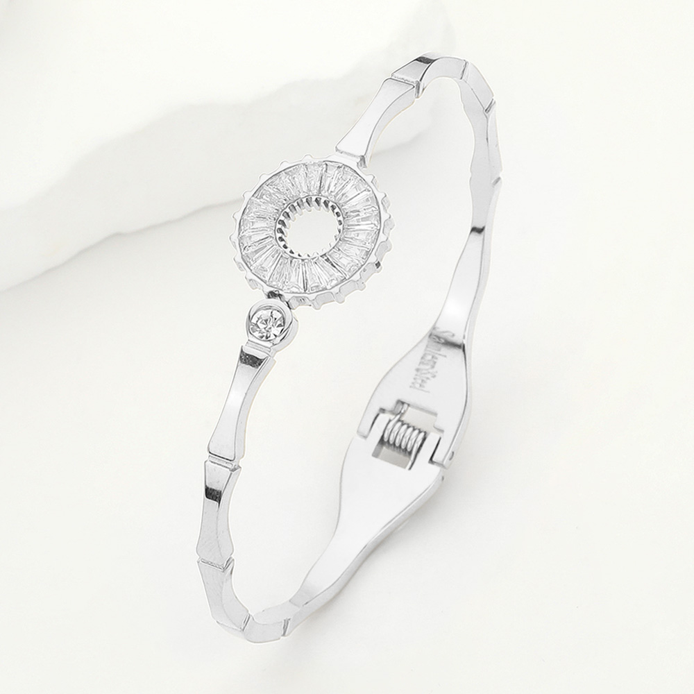 Stainless Steel Baguette Stone Embellished Donut Pointed Hinged Bangle Bracelet